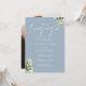 Cette élégante invitation de fête de fiançailles florale verte et bleue poussiéreuse peut être personnalisée avec vos informations en typographie chic avec votre photo au verso. Conçu par Thisisnotme©