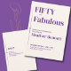 Celebrate turning fifty in style with this elegant purple and cream Fifty and Fabulous birthday invitation.