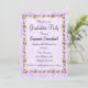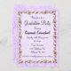 Un élégant invitation de la fête de graduation violet avec un motif damassé vintage et élégant en rose foncé et violet. Il y a aussi un cadre doré ornemental en faux métal autour du texte.