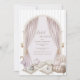 A beautiful flowing curtain surrounding fonts with your event details. Soft watercolor pillows with beautiful vintage chair and sweet teapot, cups. A lovely design for any season bridal shower. Beautiful coordinating brown fonts. Absolutely delightful.