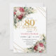 Invitation Elegant Red Blush Floral 80th Birthday Invite
