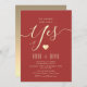 Calligraphie simple, élégante invitation à la fête d'engagement rouge avec un coeur faux or mignon et monogramme plein nom à l'arrière.