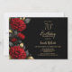 Invitation Elegant Red Floral Black 70th Birthday Party