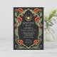 Capture timeless elegance with this Art Nouveau-inspired invitation! Featuring red peonies, leaves against a black background, this design sets the tone for a sophisticated celebration. Please note that the gold on this product is NOT real foil; it is printed flat.