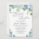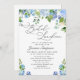 Invitation Élégant repas nuptial bleu Hydrangea aquarelle