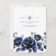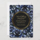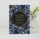 Invitation Elégant Rose bleu marine Floral & Gold Black Frame