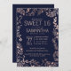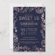 Invitation Elégant Rose bleu marine or Floral Sweet 16 Invita