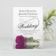 Cette belle faire-part de mariage présente une magnifique photo d'un seul rose à long tige couleur violet cassis sur son côté, réfléchissant dans un bassin d'eau avec vagues et ondulations. Le design se compose d'un script de calligraphie sophistiqué avec une longue queue bouclée, ce qui le rend à la fois moderne et classique. Une façon élégante, sophistiquée et chic d'invitation vos amis et votre famille à partager dans votre journée spéciale. Le dos de la carte est marbré couleur magenta foncé ou fraise avec un motif moelleux.