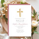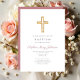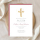 Invitation Élégant rose Croix Religieuse Fille Baptême