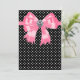 Nœud rose élégant avec centre en diamant carton d'invitation de fête à pois noirs. Ce carton chic de 5x7 de taille rose et noir à pois fonctionne très bien pour un carton d'invitation d'anniversaire à pois noirs, une carte "save the date", un carton d'invitation de mariage rose et noir à pois, un carton d'invitation de baby shower à pois noirs, un carton d'invitation de bat mitzvah à pois noirs, et pour toute autre occasion spéciale. Ajoutez vos coordonnées au recto et au verso en ajoutant les détails de votre événement, le style de police, la taille et la couleur de la police, ainsi que le texte. Veuillez noter que tous les modèles de cartons d'invitation que vous trouverez sur Zazzle sont des illustrations imprimées sur du papier plat sans véritables bijoux, nœuds, reliefs, g