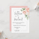 Scénario moderne magnifique et élégant avec les noms de mariée et de mariée et les informations de mariage de police simple lieu. Une petite épingle de fleurs roses, pêche et ivoire qui se drapent sur le coin supérieur droit, dans des aquarelles douces. Un romantisme pur. Terminé avec le script moderne Réception pour le suivi avec des lignes d'accent minces. Absolument beau.