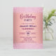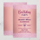 A modern design featuring elegant calligraphy on a pink metallic background with rose glitter. Customize the details for a chic Birthday Celebration.