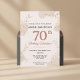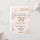 Celebrate a milestone 70th birthday with this elegant invitation. Featuring delicate botanical illustrations in rose gold and blush tones, set against a soft cream background, subtle gold glitter accents add a touch of sparkle. This customizable design offers a sophisticated and warm way to invite guests to a special celebration for your loved one. Perfect for a memorable 70th birthday party it captures the joy and grace of reaching this remarkable age. Easily personalize all event details for a truly unique celebration.