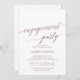 Cette élégante carte d'invitation à la partie de fiançailles en or rose est parfaite pour un événement d'automne. Le design rose vif présente une carte minimaliste ornée d'une typographie romantique et fantaisiste en feuille d'or rose. Remarque : Ce design ne présente pas de véritable feuille d'or rose. C'est un graphisme de haute qualité fait pour ressembler à du papier doré rose.