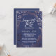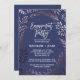 Cette élégante carte d'invitation à la fête d'or et de fiançailles de marine rose est parfaite pour un événement élégant. Le design se compose d'un cadre feuilleté rose vif sur un arrière - plan bleu foncé et d'une police cursive éblouissante. Remarque : Ce design ne présente pas de véritable feuille d'or rose. C'est un graphisme de haute qualité fait pour ressembler à de l'or rose chatoyant.