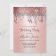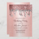 Cette élégante parties scintillant rose en or et argent brillant goutte d'invitation anniversaire est parfait pour tout âge avec rose cool or brossé faux parties scintillant en métal goutte à goutte et strass design goutte à goutte. Personnalisez-le avec vos propres informations avec de belles polices monographiques.