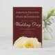 Elégant Faire-part de mariage floral de Rose Jaune Bourgogne. Une élégante invitation avec une belle rose jaune. L'arrière - plan est rouge bordeaux. Le texte est un script moderne blanc. Vous pouvez facilement customiser tout le texte - le personnaliser avec le nom de la mariée, le nom du marié, la date et l'heure, l'emplacement, et modifier ou effacer tout texte sur l'invitation.