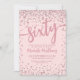 Voici une invitation chic et festive à 60e anniversaire, parfaite pour marquer ce jalon spécial dans le style. Le design mis à jour est composé d'un arrière - plan rose pâle à la fois à l'avant et à l'arrière, associé à d'élégantes polices d'or roses partout. En haut, "Sixty" est présenté de manière très visible dans une calligraphie audacieuse, donnant le ton pour une fête amusante et inoubliable. Le texte utilise un mélange de script et de polices modernes en or rose, ajoutant un contraste chaud et élégant sur le fond rose. Une goutte de confetti en parties scintillant d'or faux rose ajoute juste la bonne quantité de brillant, continuant sur le dos pour une finition polie. Cette invitation est parfaite pour fêter avec flair l'âge de 60 ans. Les couleurs arrière - plan et police peuvent être customisées pour correspondre à votre style personnel. Elégante Parties scintillant Rose Gold 60e Anniversaire Invitation Blush Pink Confetti Soixante ans. Veuillez noter que la parties scintillant est fausse, sans feuille ni éclat. Disponible sous forme d'invitation imprimée, ou en tant qu'invitation numérique téléchargeable que vous pouvez envoyer par e-mail ou avoir imprimé localement !