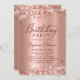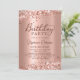 Elégant Rose Gold Parties scintillant Metal Invitation 80e Anniversaire. Célébrez dans le style avec ces élégantes feuilles métalliques d'or rose et parties scintillant 80e anniversaire invitations de fête. Doté d'une calligraphie manuscrite moderne, d'un arrière - plan de papier métallique brossé rose fuselé ou faux rose, et d'une bordure de parties scintillant glamour, ce design respire le raffinement. Parfaits pour tout âge et faciles à personnaliser, ces invitations donnent le ton pour une célébration inoubliable.