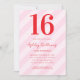 Créez vos propres invitations personnalisées à 16e anniversaire avec typographie moderne et arrière - plan motif rose rayé
