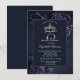 Roses violet foncé sur fond bleu marine. Carte d'invitation tendance parfaite pour une célébration d'anniversaire de femme stylée.