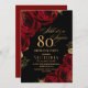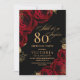 Invitation Elégant Roses noires et rouges Floral 80e annivers