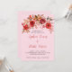 Cette élégante invitation à un mariage est faite d'un arrière - plan rose doux, qui offre une base romantique et accueillante pour son design floral automne exquis. En haut, un éventail de fleurs mariages de automne, dont des roses rouges vibrantes et des fleurs roses somptueuses, est joliment aménagé, entrelacé de feuillage vert, brun et rouge luxuriant. Cette combinaison apporte une touche de charme et de sophistication saisonnière à l'invitation, ce qui en fait un lieu parfait pour les couples à la recherche d'un mélange d'élégance et de beauté rustique. Le texte de l'invitation est rendu dans une simple police noire, assurant clarté et un appel intemporel. Cette approche minimaliste permet au design floral complexe de prendre le devant de la scène, créant une composition harmonieuse et visuellement captivante. Les noms des couples sont surlignés d'une police rouge frappante, assortie aux roses et ajoutant une touche personnalisée qui améliore le design général. Idéale pour les mariages d'automne ou d'hiver, cette invitation capte l'essence de ces saisons avec ses accents floraux vibrants mais subtils. Les roses rouges et les fleurs qui les accompagnent, ainsi que le feuillage vert, marron et rouge varié, évoquent la chaleur et la richesse de l'automne et l'élégance cosy de l'hiver, ce qui en fait un choix polyvalent pour les mariages dans les deux saisons. De plus, le motif floral est parfait pour un mariage rustique ou campagnard, ajoutant un élément de beauté naturelle et de charme à la célébration. Pour les mariages aux couleurs variées, autour du rouge, du rose, du marron, du blanc ou du vert, cette invitation est un excellent choix. Le mélange harmonieux de ces couleurs assure que l'invitation complètera harmonieusement le décor et le thème général de la mariage. Que vous planifiez une fête en plein air rustique, une ambiance champêtre ou un événement classique en intérieur, cette invitation donnera le ton pour une occasion magnifique et mémorable. L'arrière - plan rose douce de cette invitation, associée à un design floral délicat et à des couleurs réfléchies, en fait un choix intemporel pour les couples qui souhaitent célébrer leur amour dans le style. Les fleurs automnales, ainsi que le feuillage varié, créent un impact visuel étonnant. Parfait pour l'automne, l'hiver, le rustique, le champêtre, le thème floral ou les mariages élégants, cette invitation laissera une impression durable à vos invités, préparant le terrain pour une célébration vraiment inoubliable.