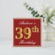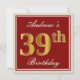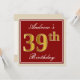 Ces caractéristiques de conception simples et élégantes d'invitation de fête d'anniversaire un message personnalisé comme "le trente-neuvième anniversaire d'Andrew" (avec le "trente-neuvième" ayant un faux/imitation or-comme le regard de coloration) dans un secteur carré rouge-coloré comportant un contour simple. Le nom dans un élégant blanc-est coloré manuscrit-comme le texte, et peut être customisé. Le dos comporte les détails personnalisables d'invitation. Une invitation de fête d'anniversaire comme ceci pourrait peut-être être employée en invitant des personnes à une fête d'anniversaire étant tenue pour quelqu'un qui célèbre leur neuvième anniversaire trente. [~Z0000227]