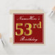 Ces caractéristiques de conception simples et élégantes d'invitation de fête d'anniversaire un message personnalisé comme "le cinquante-troisième anniversaire de NameHere" (avec le "cinquante-troisième" ayant un faux/imitation or-comme le regard de coloration) dans un secteur carré rouge-coloré comportant un contour simple. Le nom dans un élégant blanc-est coloré manuscrit-comme le texte, et peut être personnalisé. Les caractéristiques arrières ont personnalisé des détails d'invitation. Une invitation de fête d'anniversaire comme ceci pourrait peut-être être employée en invitant des personnes à une fête d'anniversaire étant tenue pour quelqu'un qui célèbre leur troisième anniversaire cinquante. [~Z0000227]