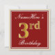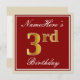 Invitation Elégant, Rouge, Faux Gold 3ème anniversaire + Nom