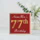 Invitation Elégant, Rouge, Faux Gold 77e anniversaire; Nom pe