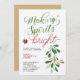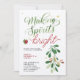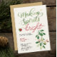 Cette élégante invitation de Noël saisit la magie des vacances avec un design nostalgique du milieu du siècle. Avec un script d'aquarelle festif dans le rouge et le vert, la joyeuse phrase "Making Spirits Bright" se distingue dans un style élégant et écrit à la main. Accentué par une délicate feuille d'aquarelle dans les tons verts doux, le design crée une ambiance cosy et fantaisiste parfaite pour célébrer la saison. L'esthétique rétro se marie magnifiquement avec une typographie noire propre et personnalisable, ce qui en fait l'idéal pour les événements personnels et professionnels. Que ce soit pour une fête d'entreprise, un rassemblement familial festif ou une fête saisonnière avec des amis, cette invitation de Noël donne un ton joyeux et intemporel.