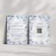 Elegant royal blue floral calligraphy QR code all-in-one wedding invitation.