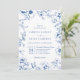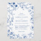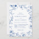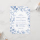 Invitation Elegant Royal Blue Floral Garden QR Code Wedding