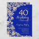 Invitation Elégant Royal Blue Gold Roses 40e anniversaire