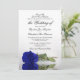 Cette belle faire-part de mariage est simple, traditionnelle et élégante. Il présente une belle photo d'un rose à longue tige bleu royal ou couleur cobalt se reflétant dans un bassin d'eau avec une formulation formelle où les parents de la mariée émettent l'invitation. La calligraphie script sophistiquée lui donne un style intemporel et classique. Belle façon d'invitation vos amis et votre famille pour faire partie de votre journée spéciale.
