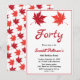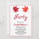 Cette élégante invitation d'anniversaire d'automne est parfaite pour un anniversaire d'automne moderne. Le design simple présente des feuilles en chute bordeaux et orange avec une élégante typographie noir et bordeaux sur un arrière - plan blanc.