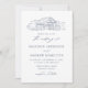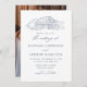 Invitations de mariage rustiques avec une illustration esquissée marine d'une grange exposée en haut de l'invitation sur un arrière - plan blanc. Les invitations de mariage à la grange de photos comportent des éléments de calligraphie marine élégants tout au long de la conception. Personnalisez les invitations de mariage de la marine avec vos noms et détails mariages. L'invitation s'inverse pour afficher votre photo de fiançailles vertical à fond saigné.