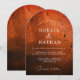Invite your guests with this stunning arched wedding invitation featuring a rich, dark wood grain texture that exudes rustic elegance. This modern yet organic design perfectly captures the romantic essence of a woodland or country-style celebration.