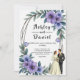 Cette élégante faire-part de mariage florale aquarelle est parfaite pour une mariage moderne. Le design romantique présente un cadre floral aquarelle élégant avec une illustration de mariée et de mariée et de calligraphie noire sur un arrière - plan blanc.