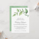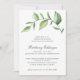 Invitation à l'anniversaire de la mort rustique avec un design simple avec une aquarelle peinte de verdure avec de grands feuilles, sur un arrière - plan blanc. Vous trouverez ci-dessous les détails de votre événement dans un gris doux et le côté arrière a un lave-aquarelle vert clair. Un design botanique élégant qui est parfait pour une fête d'été.