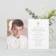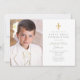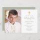 Invitation Elégant Sage Green Cross Photo Boy First Communion