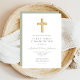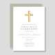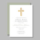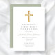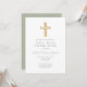 Invitation Elégant Sage Green Cross Religieux Première Commun