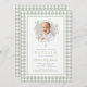 Invitation Elegant Sage Green Gingham Bow Photo Girl Baptism