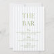 Ce panneau élégant de menu de bar présente un arrière - plan rayé bleu doux avec une typographie de sauge verte raffinée et des accents de script subtils. Conçu pour les mariages de jardin, les réceptions raffinées et les célébrations de plein air intemporelles. Customisez la carte des vins, bières et spiritueux pour refléter vos offres exactes et votre style d'événement. Partie de la collection de Faire-part de mariage "Iris" — explorez la suite complète de cette page pour trouver des articles correspondants comme des invitations, des menus, des panneaux, et plus encore. Entièrement modifiable et prêt à personnaliser. ・ Des maquettes pour cette conception ont été créées à l'aide de l'IA Midtravel.