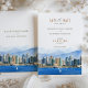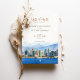 Annoncez votre prochain mariage avec cette invitation sophistiquée Save-the-Date qui met en vedette l'incroyable horizon de San Diego, Californie. La carte présente une belle aquarelle illustrant le paysage urbain animé de San Diego, sur fond d'océan Pacifique serein et de montagnes majestueuses. Le texte est présenté avec élégance dans un mélange de polices de caractères serif et de caractères délicats, utilisant des couleurs comme l'or muté, le vert olive et la terre cuite chaude. Idéal pour les couples qui planifient un mariage côtier contemporain, cette invitation saisit l'essence du charme de San Diego avec élégance artistique.