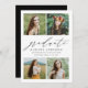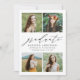 Invités Invitations à votre fête de remise de diplômes en style avec notre Elegant Script photo graduation party invitation. Les invitations élégantes à la remise des diplômes affichent quatre de vos photos préférées encadrées en blanc avec "diplômé" dans un script de calligraphie noir et moderne. Personnalisez les invitations en ajoutant le nom du diplômé, le nom de l'école, l'année de remise des diplômes et les plans futurs. Le dos des invitations minimalistes de la fête de graduation affiche les détails de votre parti en texte blanc contre un arrière - plan noir solide.
