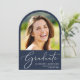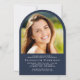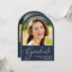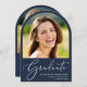 Invitation Élégant Script Arch Photo Blue Graduation Party