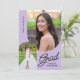 Invitation vos amis et votre famille à votre Graduation Party avec cette élégante, 2 photo, violet clair et noir invitation. Le design comprend des photos avec une arête voûtée et offre du texte personnalisé pour les détails de votre fête.