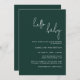 Simple Green Script Genre Neutre Baby shower Invitation vous pouvez facilement customiser en cliquant sur le bouton "Personnaliser". Notre belle et élégante invitation au baby shower comprend la calligraphie moderne et la typographie moderne en blanc sur un arrière - plan vert. Sur invitation, vos invités aimeront recevoir. Tous les éléments de cette carte sont entièrement modifiables tant en texte qu'en couleurs arrière - plans. Cliquez simplement sur le bouton "Customiser avec notre outil de design" imbriqué sous le lien "Personnaliser" pour éditer!